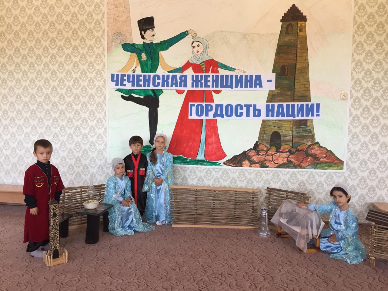 В рамках реализации годового плана работы ГБДОУ № 26 на 2019-2020 учебный год и с целью поддержания традиции бережного отношения к женщине, познакомить дошкольников с историей чеченского народа в ДОУ с детьми подготовительной группы 13.09.2019г. были проведены мероприятия, посвящённые Дню Чеченской Женщины. День Чеченской женщины учрежден Главой Республики Рамзаном Кадыровым как дань уважения женщинам, которые во все времена выносили на своих плечах тяготы и лишения связанные с трагическими событиями.