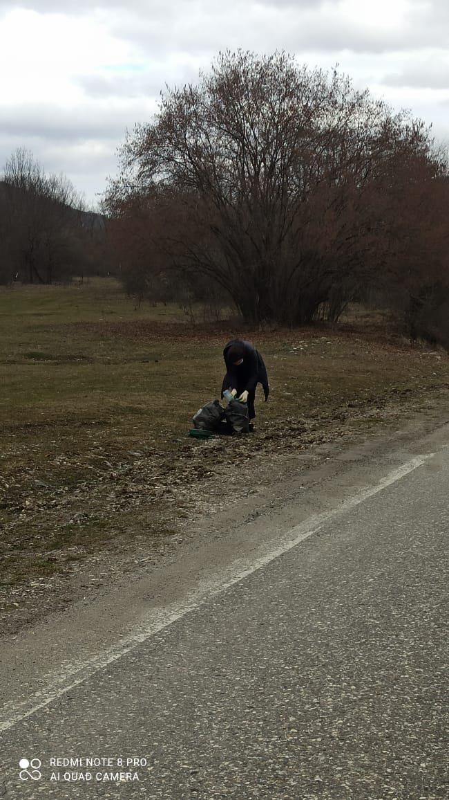 Сегодня 1 апреля 2021 года работники ГБДОУ № 26 провели уборку закрепеленной территории по въездной дороге с.Элистанжи от мусора.
