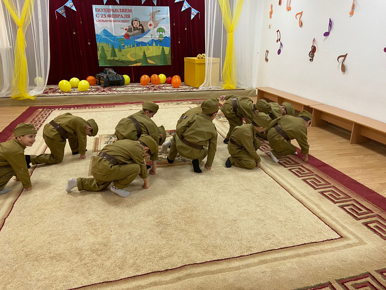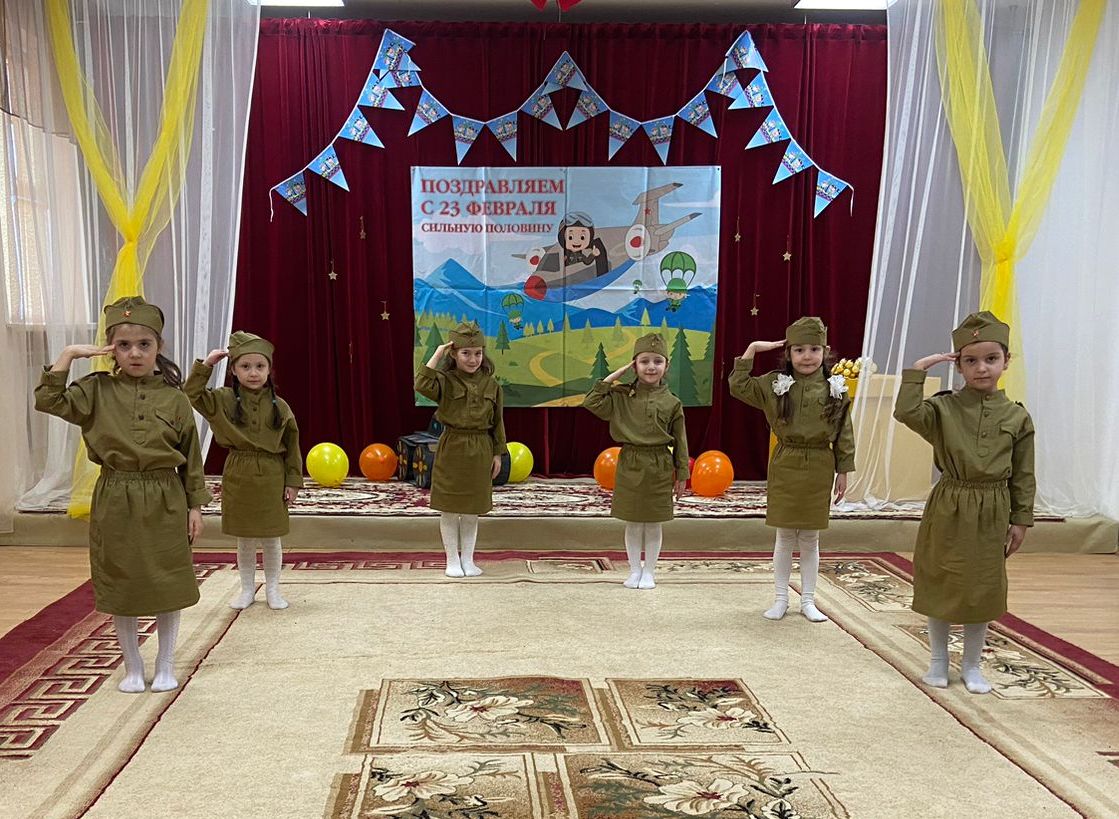 Для детей старшей группы были организованы беседы на военную тематику «Наша армия», «Подрасту и буду в армии служить», «Есть такая профессия – Родину защищать». Дошкольников в игровой форме познакомили с историей праздника и некоторыми фактами из прошлого и настоящего нашей армии. Прозвучали стихи и рассказы о военных профессиях. Дети отгадывали армейские загадки, играли в игры «Летает - не летает», «Что в армии бывает».